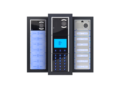 Comelit Ikall entrance panel: technology and style in various modular solutions and in two versions: with buttons and with electronic directory.